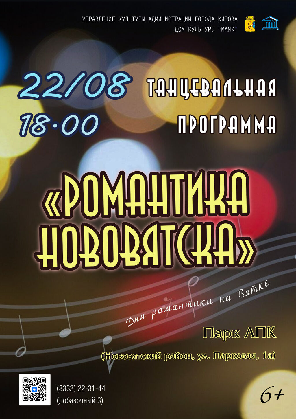 Для жителей 41-го микрорайона организаторы дома культуры «Маяк» подготовили танцевальную программу «Романтика Нововятска». На сцене в парке ЛПК прозвучат романтические песни, хиты разных времен и, разумеется, будут танцы под луной!