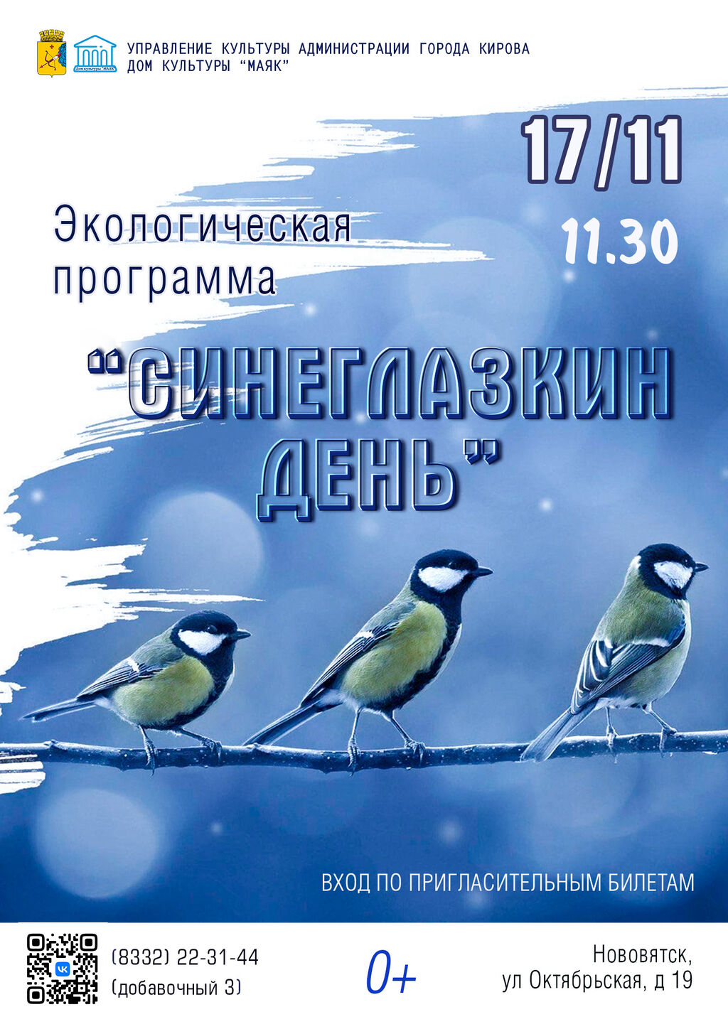 17 ноября в 11.30 ч. в доме культуры «Маяк» (г. Киров, Нововятский район, ул. Октябрьская, 19) пройдет экологическая программа «Синеглазкин день».