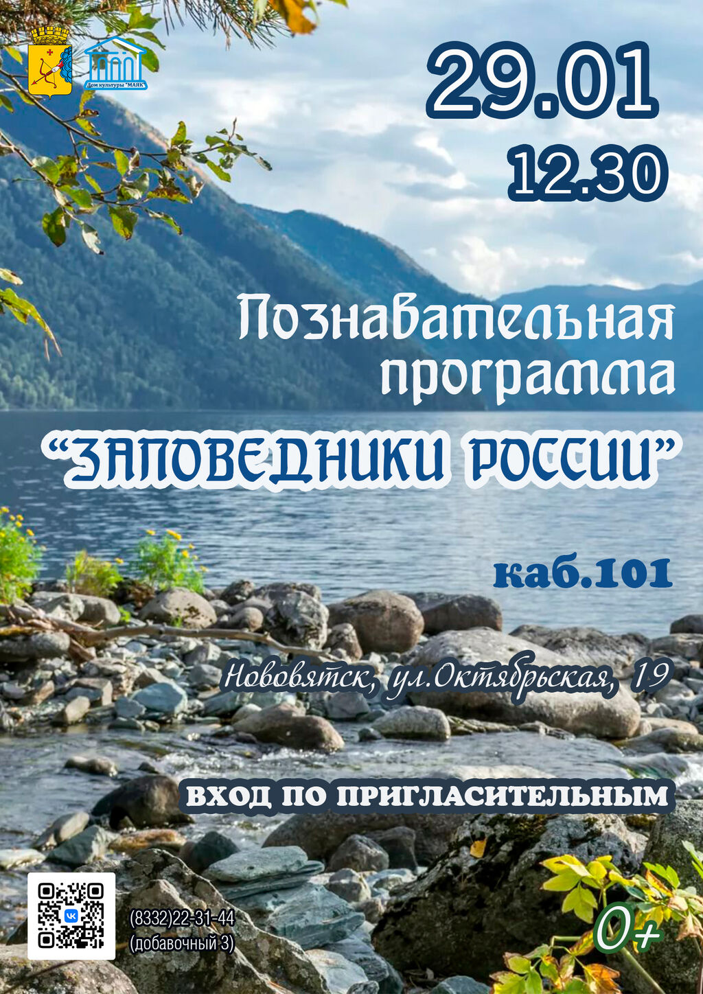 29 января 2026 г. в 12.30 ч. в доме культуры «Маяк» (г. Киров, Нововятский район, ул. Октябрьская, 19) пройдет познавательная программа «Заповедники России».